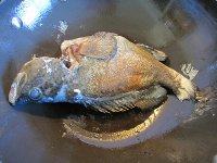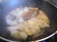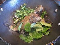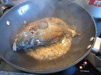 我用了沙姜以及九层塔作为配料,所以汤汁十分美味。美中不足的是我用的锅,锅底太小而且又不是不粘的,所以煎鱼过程鱼尾巴以及鱼头部分都有粘连脱皮现象,造成不美观效果。