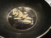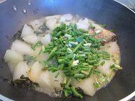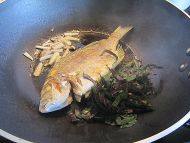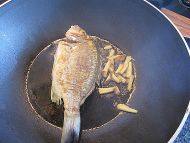 7.最后入姜末,葱花在余下的油里稍微炸出香味,将鱼拌一下