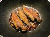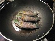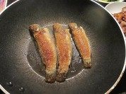 1.烧热锅倒入橄榄油把小海鱼放入中火煎。