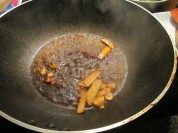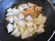 6.倒入切成小块的老节瓜,然后盖上锅盖焖数分钟。