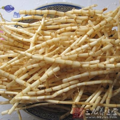白茅根根茎长圆柱形,有时分枝,长短不一,直径2-4mm。表面黄白色或淡黄色,有光泽,具纵皱纹,环节明显,节上残留灰棕色鳞叶及细根,节间长1-3cm。